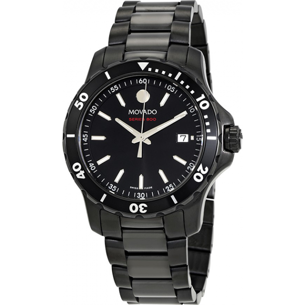 Black pvd stainless steel case and bracelet. Uni-directional rotating black pvd bezel with a black aluminium top ring. Black dial with luminous silver-tone hands and index hour markers. Arabic numeral minute markers (at 5 minute intervals). Minute markers around the outer rim. Dial type: analog. Luminescent hands and markers. Date display at the 3 o’clock position. Quartz movement. Scratch resistant sapphire crystal. Screw down crown. Solid case back. Round case shape. Case size: 40 mm. Case thickness: 10 mm. Bracelet width: 20 mm. Fold over clasp with a push button release. Water resistant at 200 meters / 660 feet. Functions: date, hour, minute, second.