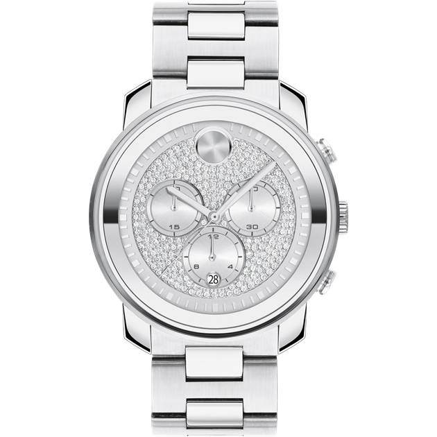 Silver-tone stainless steel case with a silver-tone stainless steel bracelet. Fixed silver-tone stainless steel bezel. Blue dial with silver-tone hands and index hour markers. Minute markers around the outer rim. Dial type: analog. Date display at the 6 o’clock position. Quartz movement. Scratch resistant sapphire crystal. Pull / push crown. Solid case back. Round case shape. Case size: 40 mm. Deployment with push button release clasp. Water resistant at 30 meters / 100 feet. Functions: date, hour, minute, second.
