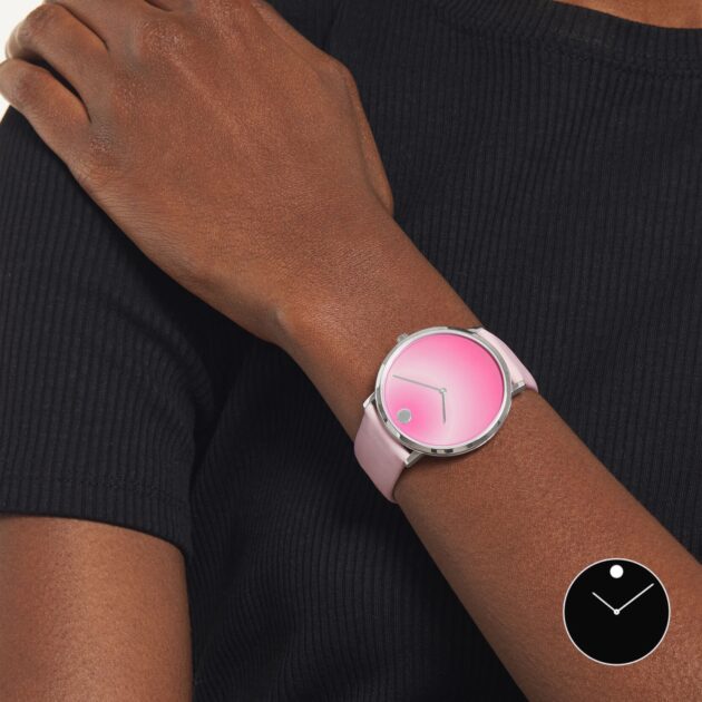Độc quyền tại Movado, Một thiết kế hiện đại, đầy màu sắc mang tính biểu tượng nhất của chúng tôi. Chiếc đồng hồ 47 hiện đại này kết hợp phong cách tối giản kiểu dáng đẹp với mặt số ombré màu hồng tuyệt đẹp. Vỏ 40mm tạo nên tuyên bố của nó, bàn tay mảnh mai và họa tiết chấm đặc trưng được đúc bằng thép không gỉ sáng bóng. Một dây đeo kết hợp hoàn hảo được chế tác từ da sang trọng hoàn thiện thiết kế.