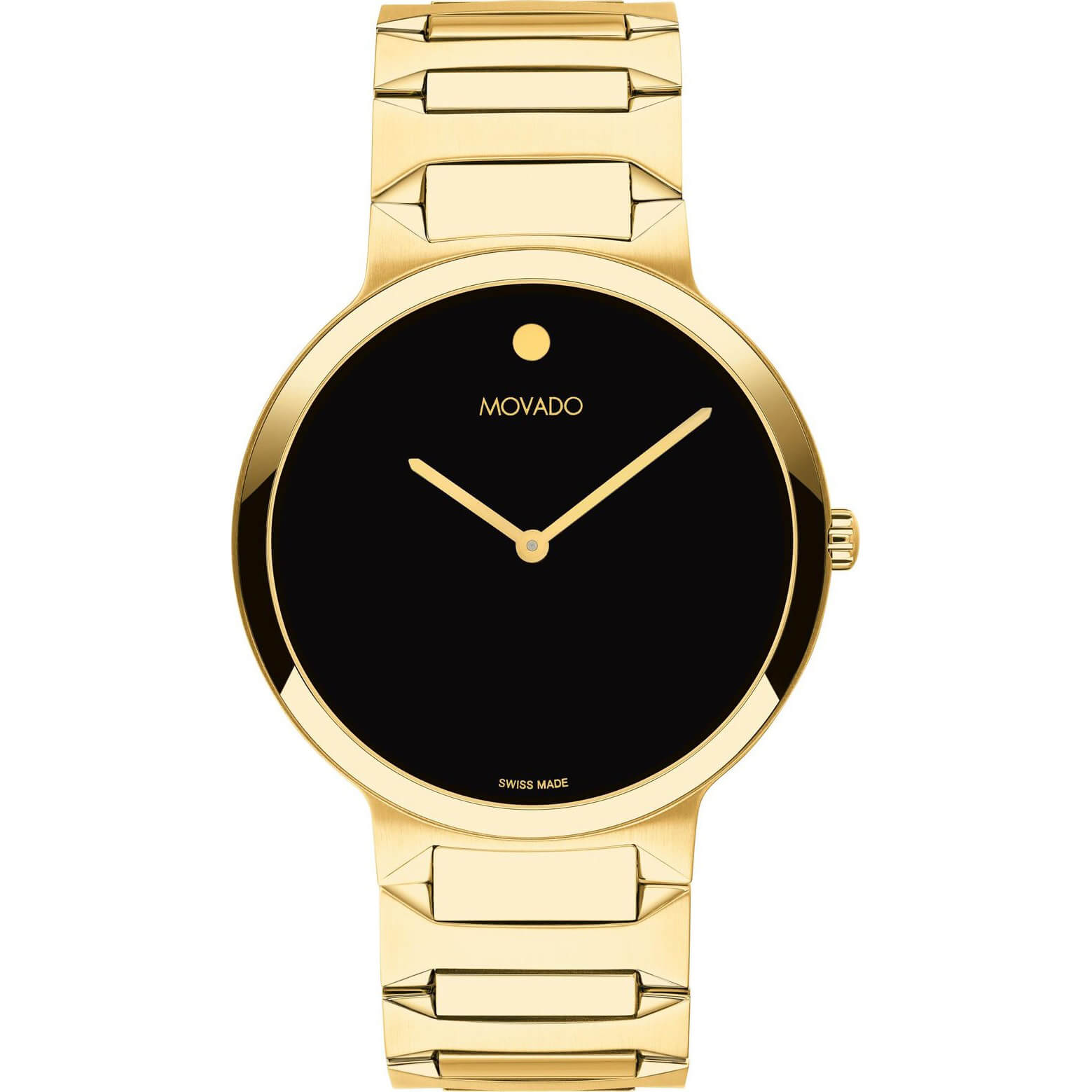 Sleek, contemporary design outfitted with sparkling crystals. Women’s Movado Infinio watch, 30mm stainless steel case and bracelet, diamond markers, sapphire crystal, Swiss quartz movement