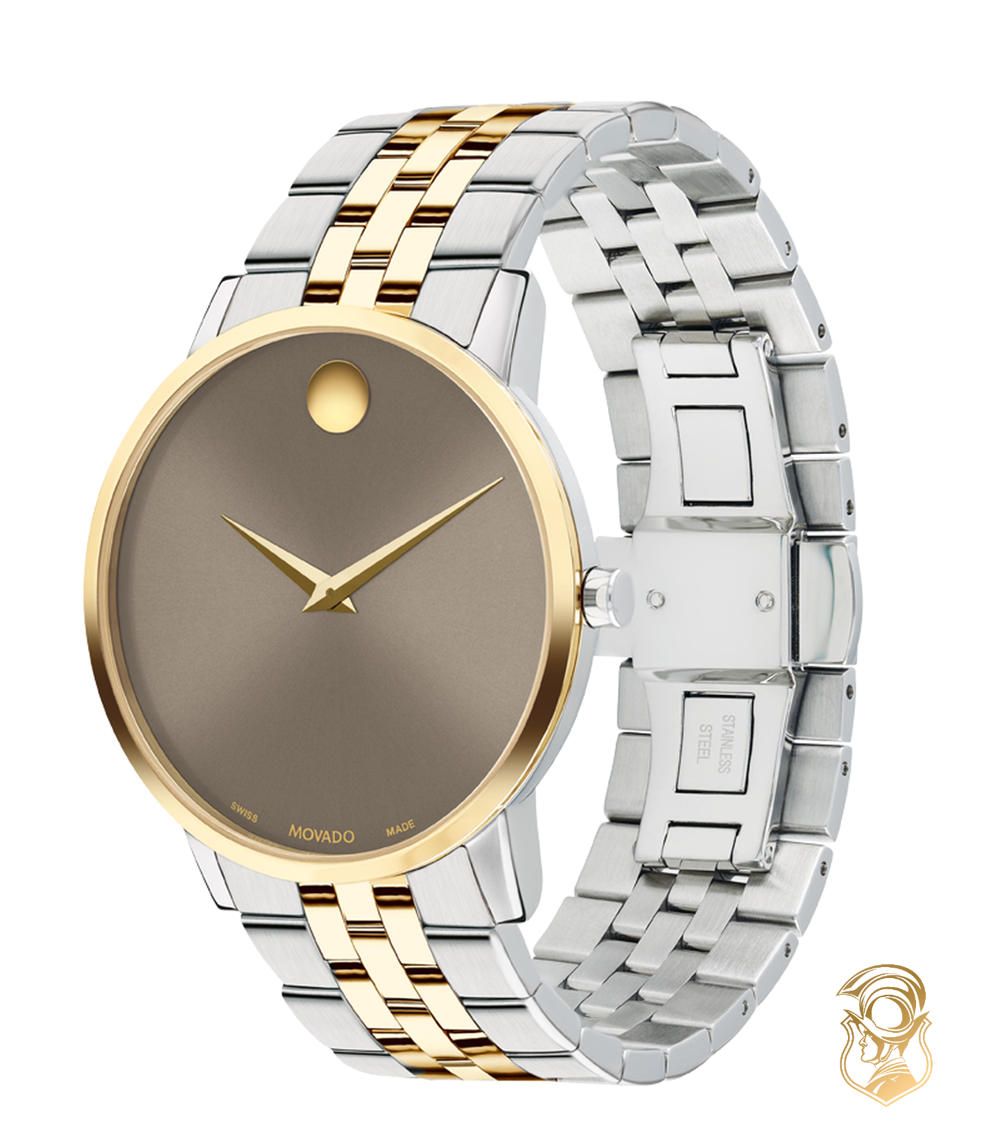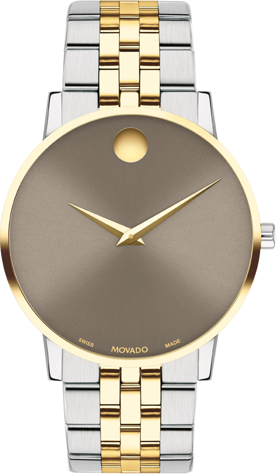 Đã đến lúc bạn sở hữu một kiệt tác. Movado Museum Classic là biểu tượng của thiết kế hiện đại, được trưng bày trong các bảo tàng trên toàn thế giới và nổi tiếng nhờ sự đơn giản thanh lịch của mặt số được xác định bằng một dấu chấm duy nhất ở vị trí 12 giờ, một yếu tố thiết kế tượng trưng cho mặt trời vào buổi trưa. Theo phong cách này, chúng tôi đã kết hợp vỏ 40mm với lớp mạ PVD vàng vàng với mặt số tia nắng màu nâu sẫm và dây đeo hai tông màu bằng thép không gỉ và vàng vàng PVD. Dấu chấm đặc trưng và kim thanh mảnh được đúc bằng PVD vàng vàng để tạo nên vẻ ngoài hoàn hảo.