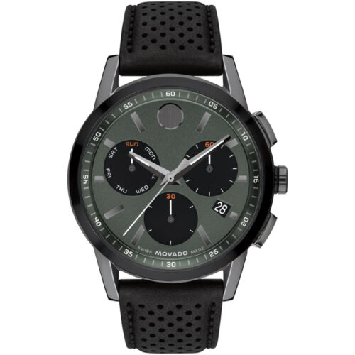 Museum Sport giới thiệu một chiếc đồng hồ bấm giờ tối giản thể thao cho thiết kế mang tính biểu tượng nhất của chúng tôi. Chiếc đồng hồ bấm giờ 43mm này có mặt số có họa tiết màu xanh lá cây, điểm nhấn Swiss Super-LumiNova® và dấu chấm đặc trưng của chúng tôi ở vị trí 12 giờ. Mặt số màu xanh lá cây có vạch chỉ giờ, Đường kính vỏ 43, Chất liệu vỏ thép không gỉ phủ PVD màu xám và đen, Pha lê Chế tạo Sapphire, Khả năng chống nước 30 mét, Bộ máy Bộ máy bấm giờ thạch anh Thụy Sĩ, Dành cho nam, dây đeo bằng da bê màu đen.