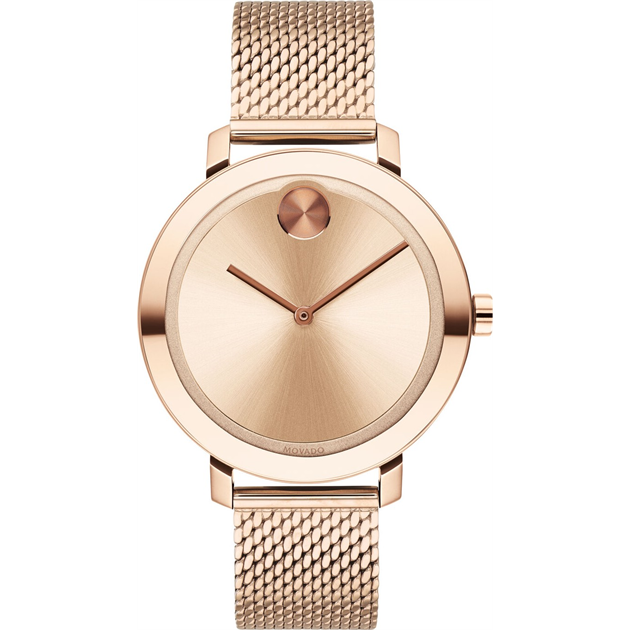 Stainless Steel Case With A Stainless Steel Bracelet. Fixed Stainless Steel Bezel. Black Dial With Silver-Tone Hands And Index Hour Markers. The Movado Dot Appears At The 12 O’clock Position. Dial Type: Analog. Automatic Movement. Scratch Resistant Sapphire Crystal. Transparent Case Back. Round Case Shape. Case Size: 27 Mm. Fold Over Clasp With A Push Button Release.