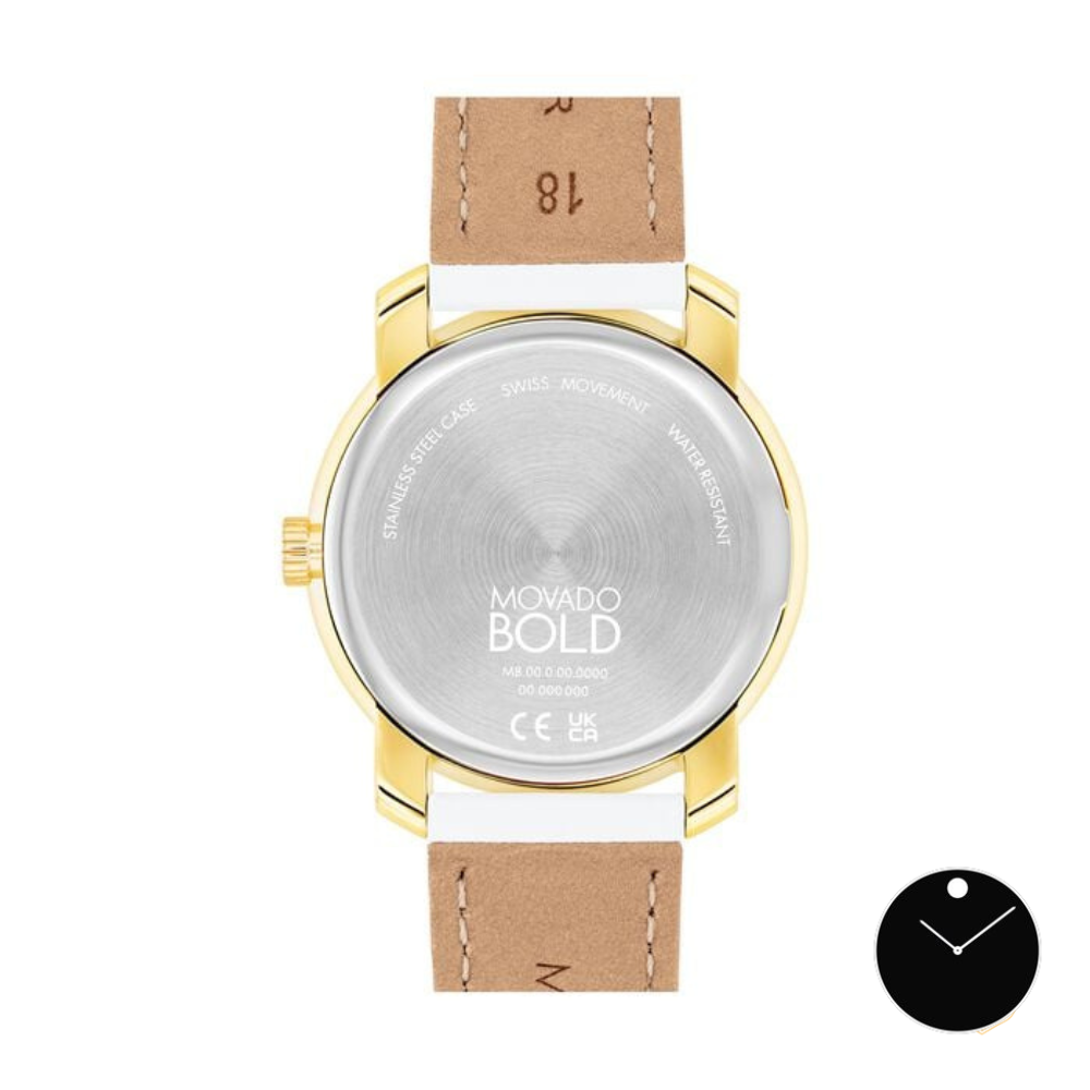Đồng hồ Movado Trend Propel dành cho nữ, vỏ PVD vàng vàng 36mm và dây đeo màu trắng, mặt số vàng vàng, tinh thể khoáng K1, Bộ máy Thụy Sĩ