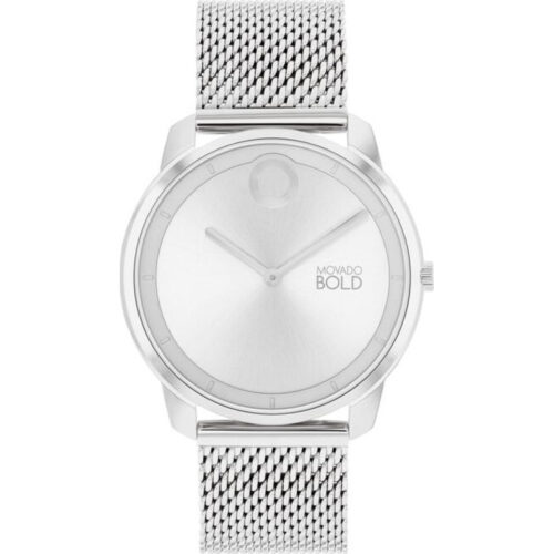 Gặp gỡ thời gian với thái độ hiện đại trong thiết kế phải có này với vòng đeo tay lưới bóng bẩy. Movado Trend Element dành cho nam, vỏ thép không gỉ 40mm và vòng đeo tay lưới thép không gỉ, mặt số màu bạc, tinh thể khoáng K1, Bộ máy Thụy Sĩ