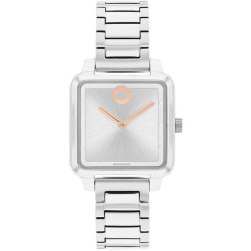 Chiếc đồng hồ bóng bẩy này tỏa sáng với thiết kế tối giản và hiện đại. Đồng hồ Movado Trend hình chữ nhật dành cho nữ, vỏ và dây đeo bằng thép không gỉ 27mm, mặt số màu bạc, K1 Mineral, Bộ máy Quartz. Mặt số màu bạc, họa tiết Museum Metallic với chấm phẳng. Đường kính vỏ 27. Chất liệu vỏ: Thép không gỉ. Mặt kính: K1 Mineral. Khả năng chống nước: 3 ATM. Bộ máy: Bộ máy Quartz. Dành cho nữ. Dây đeo: Dây đeo bằng thép không gỉ.