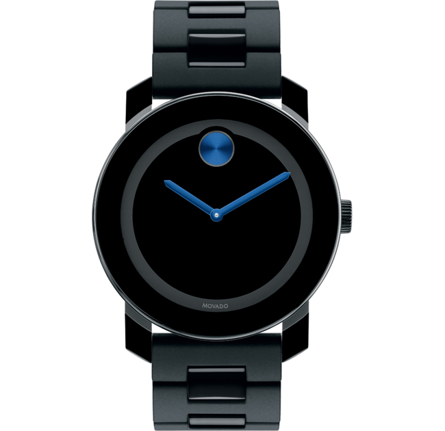 Movado’s modern magnificence is on full display with this Bold collection watch. Gunmetal brushed ion-plated stainless steel link bracelet with push-button deployment clasp