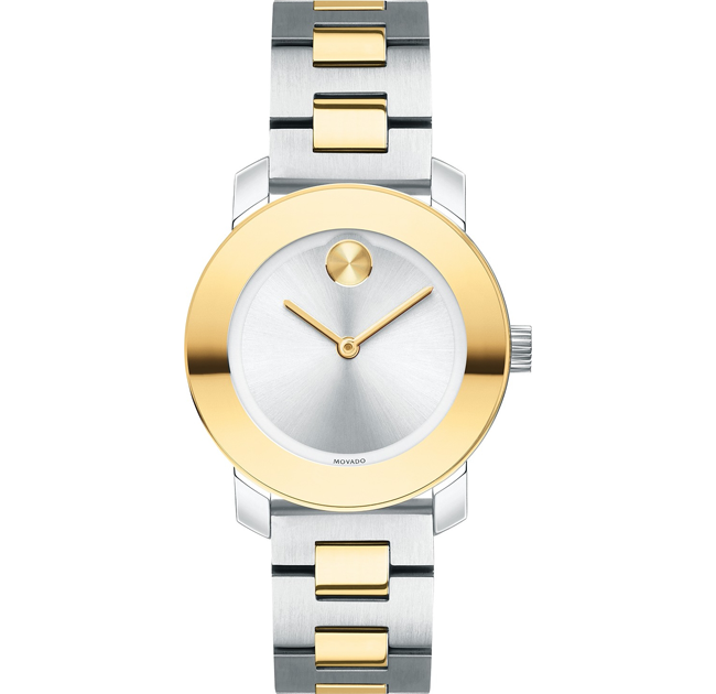 A chain detail and black-accented Museum dial bring hint of avant garde style to this iconic Swiss timepiece from Movado’s magnificient BOLD collection.