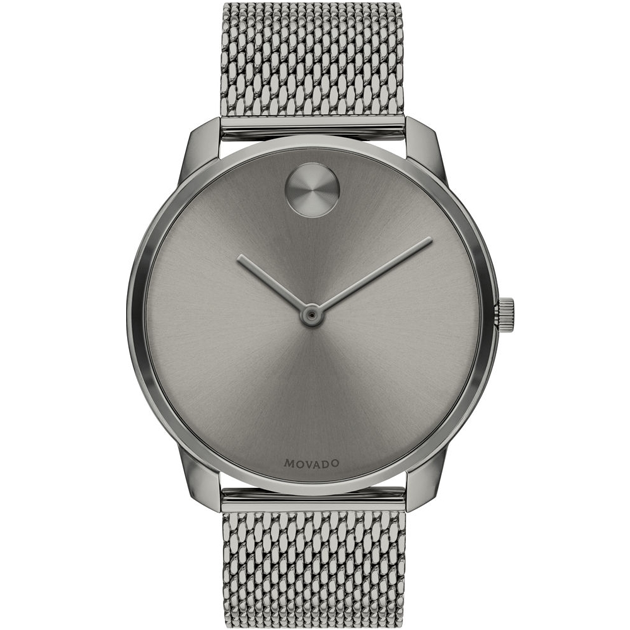 Movado BOLD, 40 mm blue ion-plated stainless steel case and mesh bracelet with a blue-toned dial.