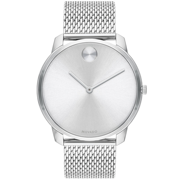 Movado BOLD Sport, 43.5 mm blue ion-plated stainless steel case with black-toned dial on blue ion-plated stainless steel link bracelet.