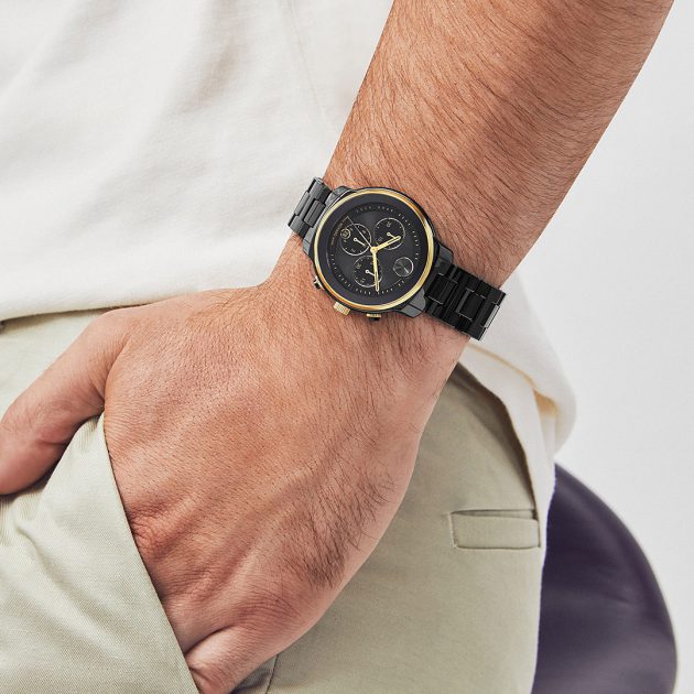 Chiếc đồng hồ chronograph thể thao, sang trọng vĩnh cửu mang lại cảm giác mới mẻ với thiết kế đương đại nổi bật kết hợp chủ nghĩa tối giản hiện đại và góc cạnh táo bạo. Vòng đeo tay cổ điển và vỏ 39.5 tạo tuyên bố được chế tác từ gốm đen sang trọng để có một lớp hoàn thiện tinh tế hoàn mỹ. Mặt đồng hồ chronograph màu đen phù hợp có ba mặt số phụ, cửa sổ ngày với các chi tiết màu vàng nhạt có tông màu vàng nhạt và các điểm nhấn Super-LumiNova® của Thụy Sĩ.