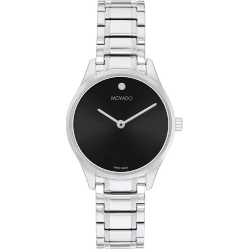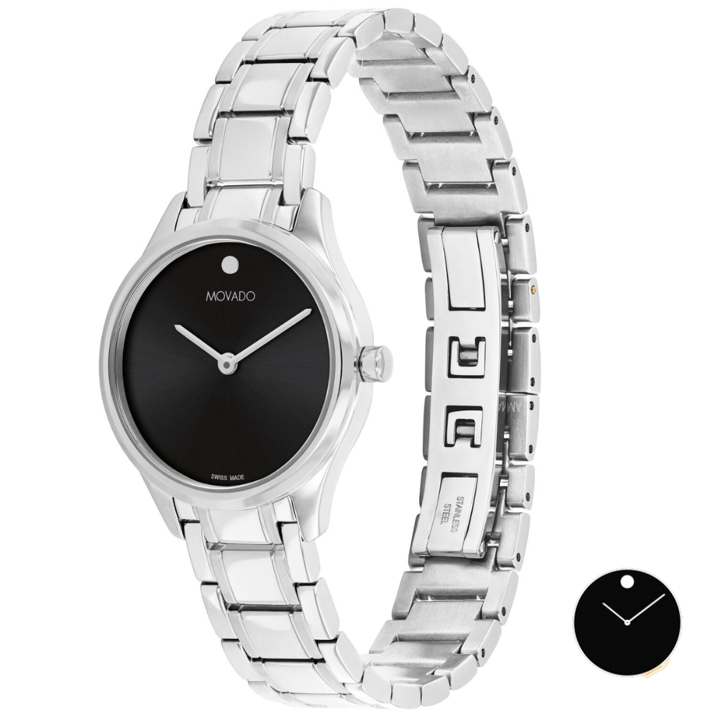 Đồng hồ Movado Catalyst dành cho nữ, vỏ và dây đeo bằng thép không gỉ mạ vàng pvd 28mm, mặt đồng hồ đen museum, tinh thể sapphire, bộ máy thạch anh Thụy Sĩ