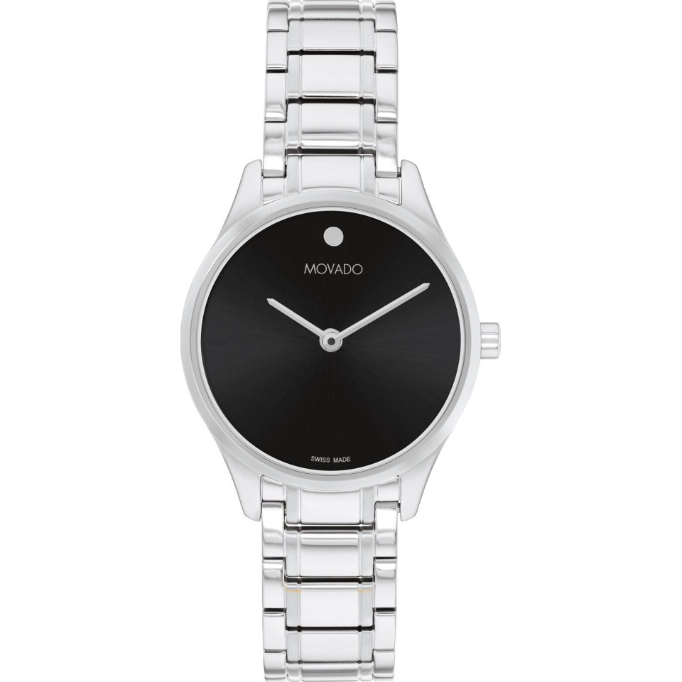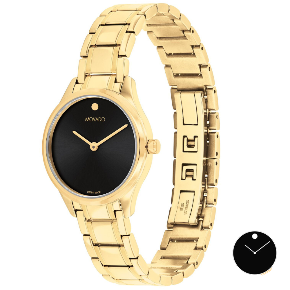Đồng hồ Movado Catalyst dành cho nữ, vỏ và dây đeo bằng thép không gỉ mạ vàng pvd 28mm, mặt số đen museum, tinh thể sapphire, bộ máy thạch anh Thụy Sĩ