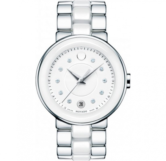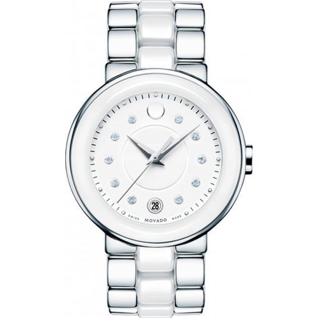 Movado Cerena 0606540 Diamond Accent Ceramic Watch 36mm