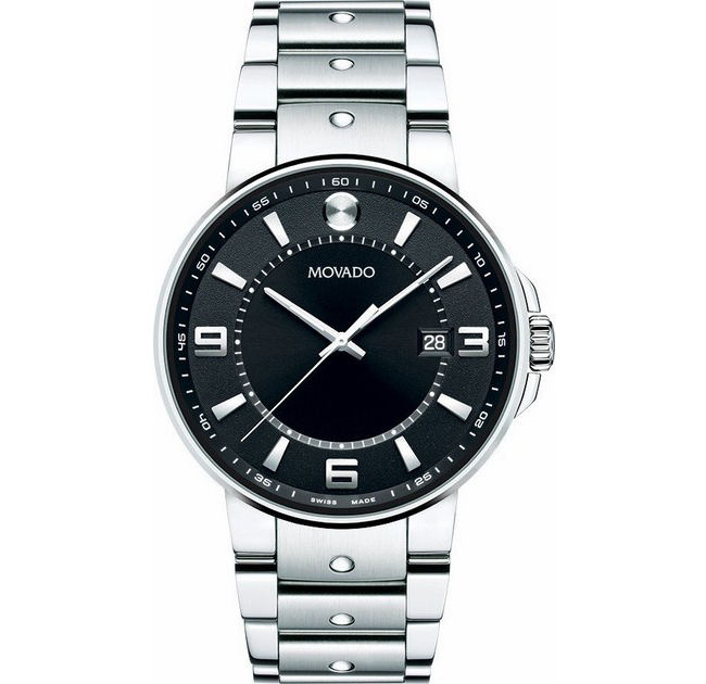 This men’s Movado Datron watch has a stainless steel case and is powered by an automatic movement. It is fastened with a silver metal bracelet and has a silver dial. The watch also has a date function.