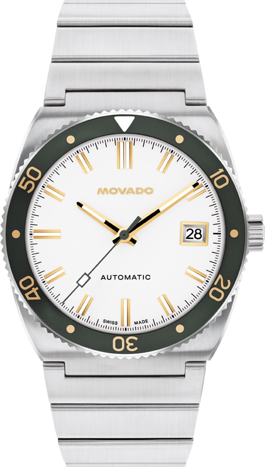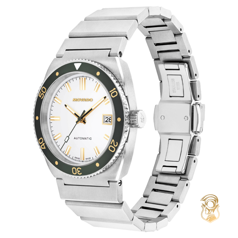 Heritage Ondoplan mang đậm phong cách đặc trưng của dòng Surf Series những năm 1970, nổi bật với kiểu dáng thon gọn và dây đeo tích hợp. Chiếc đồng hồ thép không gỉ 39mm này được vận hành bởi bộ máy tự động Thụy Sĩ chính xác, sở hữu vành nhôm xanh lá cây, mặt số trắng tinh, điểm nhấn là lớp phủ Super-LumiNova® của Thụy Sĩ, chi tiết cửa sổ ngày và nắp lưng trong suốt. Chống nước 10 atm