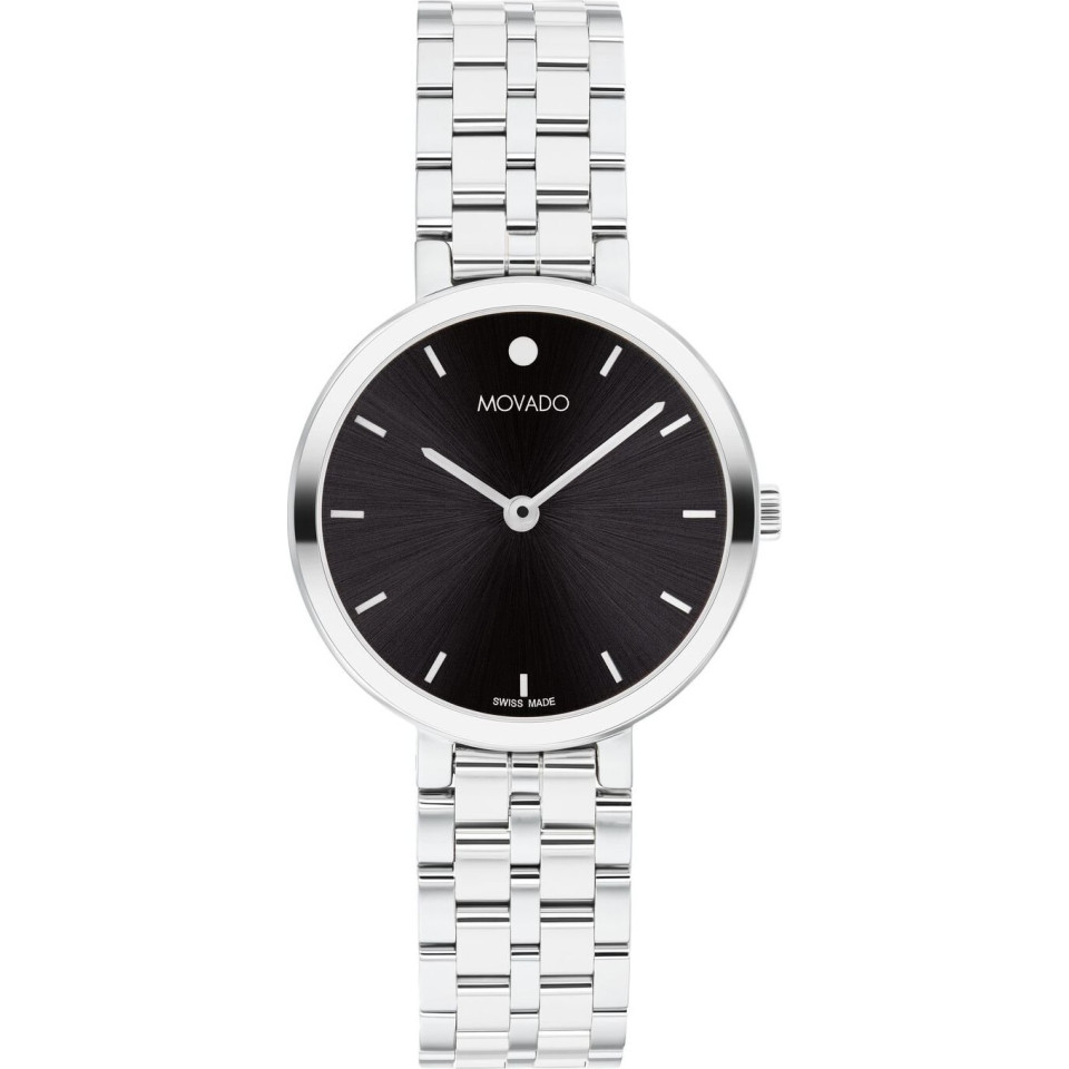 Biểu tượng của thiết kế hiện đại. Đồng hồ Movado Kora dành cho nữ, vỏ pvd màu vàng 28mm, mặt số màu đen, dây đeo bằng thép không gỉ và pvd màu vàng, tinh thể sapphire, bộ máy thạch anh Thụy Sĩ