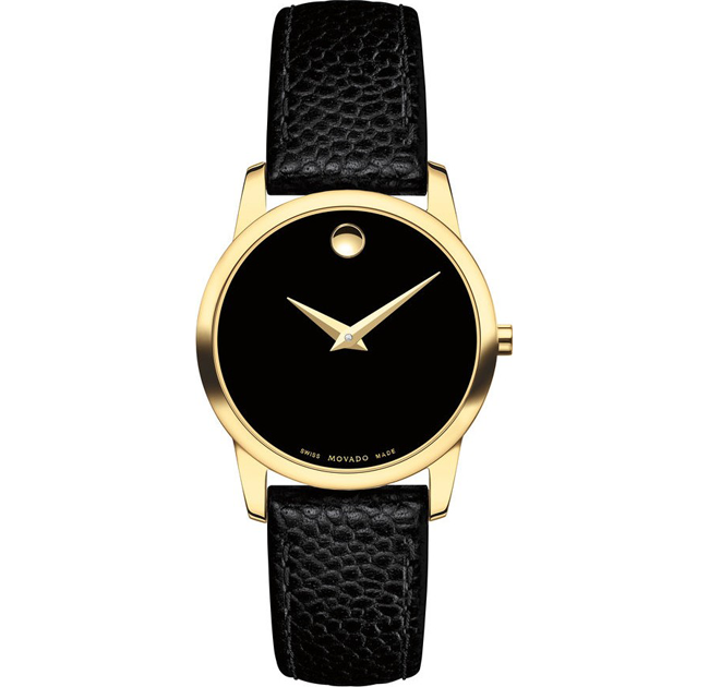Men’s Museum Classic watch, 40 mm yellow gold PVD-finished stainless steel case, black Museum dial with yellow gold-toned dot and hands, textured black calfskin strap with yellow gold PVD-finished stainless steel buckle