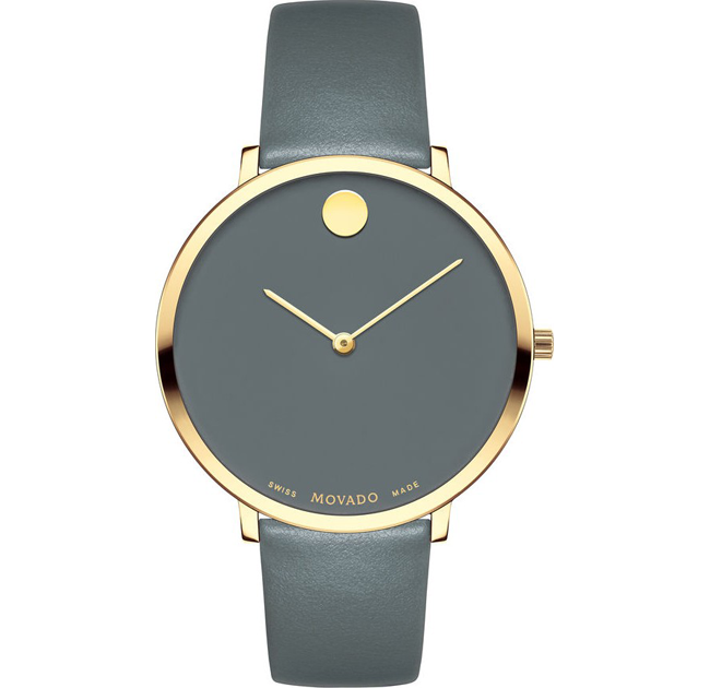 Women’s Museum Dial 70th Anniversary Special Edition watch, 35 mm ultra slim stainless steel case, 5.85 mm thin, with commemorative case-back; grey dial with silver-toned original flat dot and stick hands, grey calfskin strap with stainless steel classic tongue buckle.