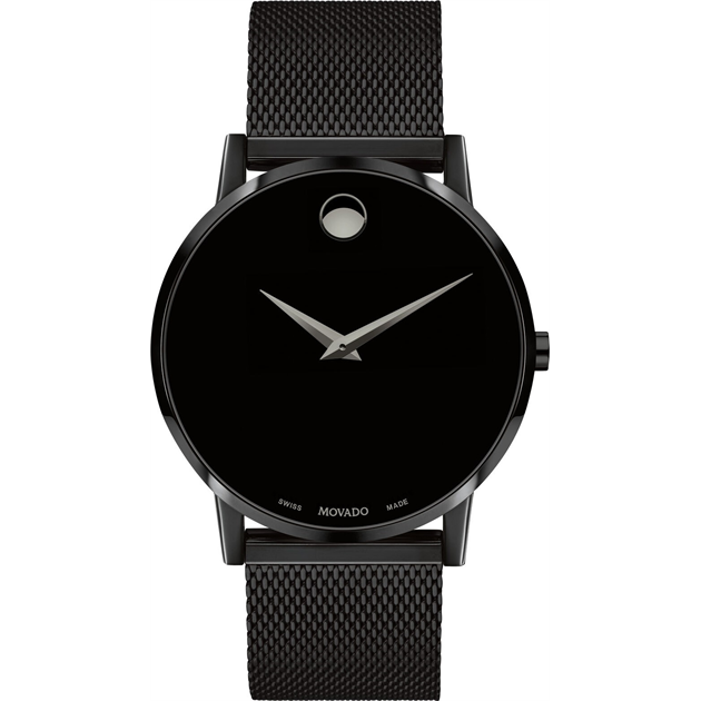 Movado Museum Classic, 28 Mm Stainless Steel Case And Mesh Bracelet With White Mother-Of-Pearl Dial & 11 Diamond Markers.