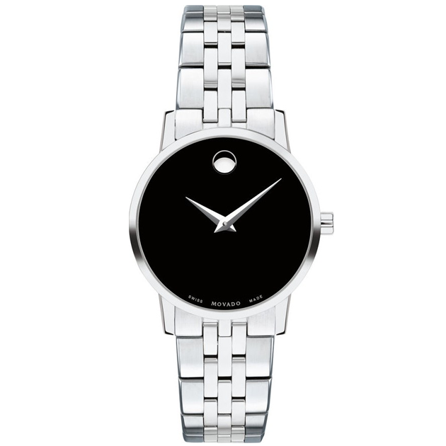 Movado Museum Sport, 42 mm rose gold PVD-finished case with black-toned dial on black leather strap.