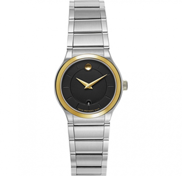 MOVADO Quadro Black Ladies Watch 28mm. Stainelss steel and yellow gold-PVD case with a stainless steel bracelet.