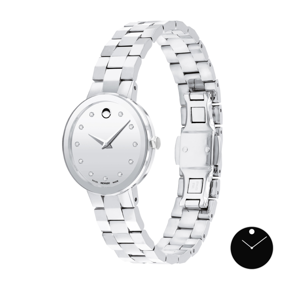 Sapphire được sắp xếp hợp lý một cách ấn tượng với tinh thể sapphire bóng bẩy từ cạnh này sang cạnh kia và một dây đeo tích hợp. Chiếc đồng hồ 28mm này có mặt số gương tông màu bạc, vạch chỉ giờ bằng kim cương và chữ ký của chúng tôi ở vị trí 12 giờ. Mặt số bằng gương bạc Museum với chấm lõm có kim cương, Đường kính vỏ 28, Chất liệu vỏ thép không gỉ, Chế tạo tinh thể Sapphire, Khả năng chống nước 30 mét, Bộ máy Bộ máy thạch anh Thụy Sĩ, Dành cho nữ, Loại đá quý kim cương, Trọng lượng carat 0,043, Độ trong của đá quý SI, dây đeo mắt xích bằng thép không gỉ.