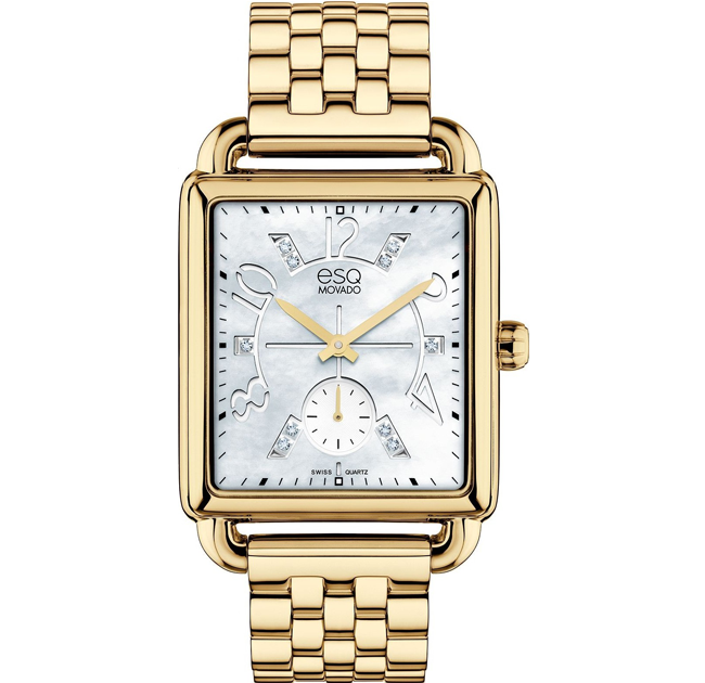 - Markers:Movado Signature Dot Gold Tone and Stick Index Luminescent