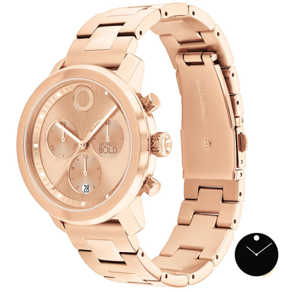 Đồng hồ bấm giờ Movado Trend Propel, vỏ PVD vàng hồng 39mm và dây đeo PVD vàng hồng, mặt số vàng hồng, tinh thể khoáng K1, Bộ máy bấm giờ Thụy Sĩ
