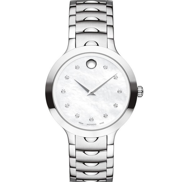 Movado creates a timely juxtaposition with modern design and classic elegance. From the Trevi watch collection. Stainless steel bracelet with push-button deployant clasp.