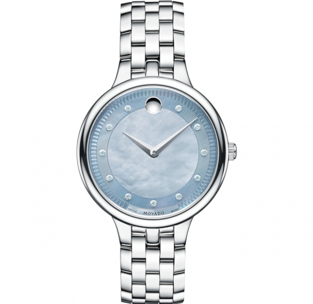 Movado creates a timely juxtaposition with modern design and classic elegance. From the Trevi watch collection. Stainless steel bracelet with push-button deployant clasp.