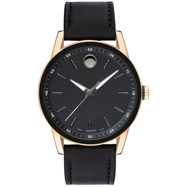 Movado Ultra Slim, 40 mm light grey PVD-finished stainless steel case with a blue-toned dial on navy leather strap.