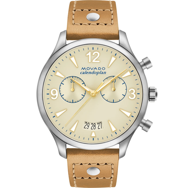 An elegant two-tone stainless steel design adds color and class to this Movado timepiece. The polished design features a dark black dial and signature Movado dot.