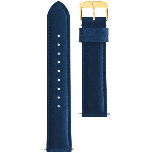 18mm wide navy blue suede strap with matching top-stitching, dual keepers, tension pins and classic rose gold-toned (RG) buckle; fits all 36mm Heritage Series models.