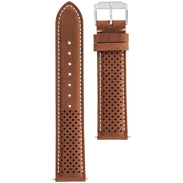 Navy blue smooth leather strap with matching top-stitching, dual keepers, tension pins and classic stainless steel (SS) buckle; fits select Heritage Series, Red Label, 1881 Automatic, Movado Ultra Slim models.